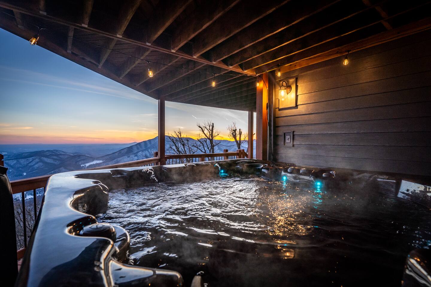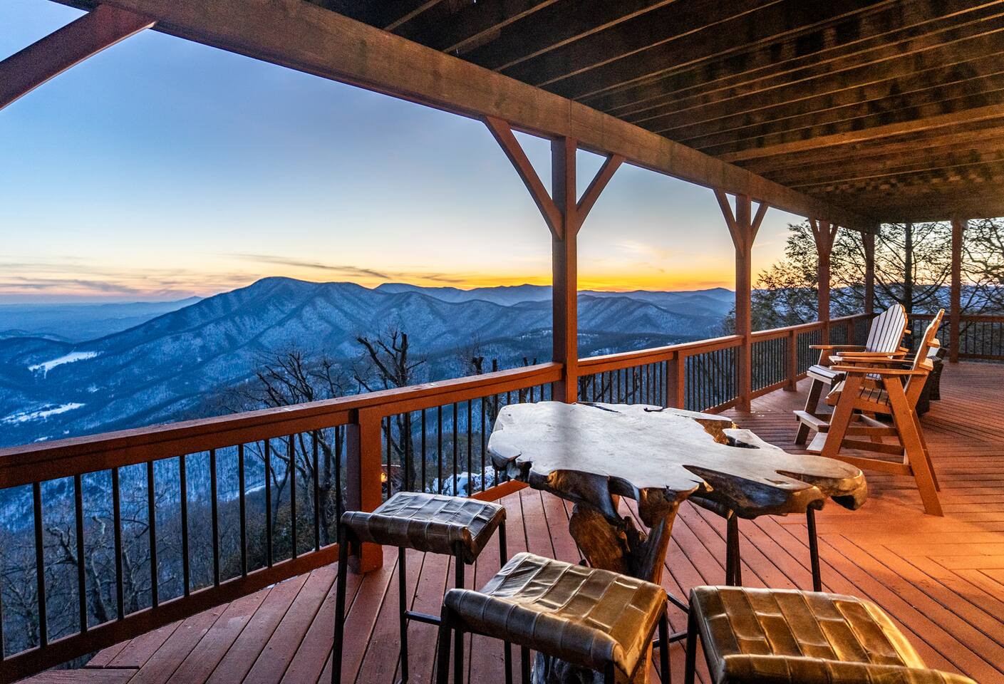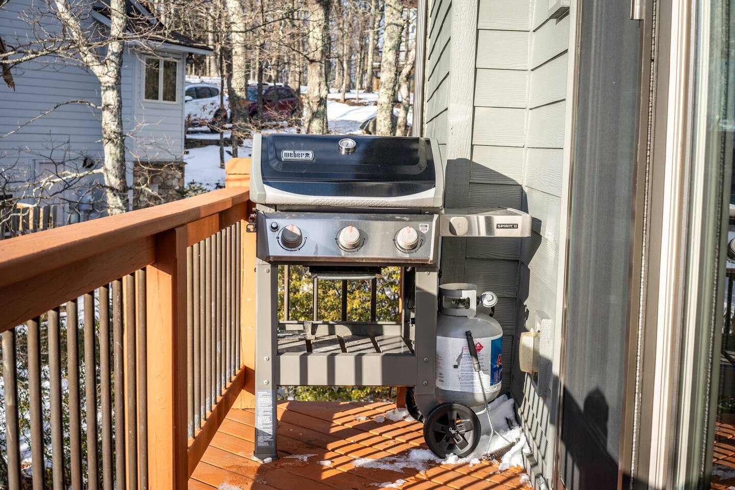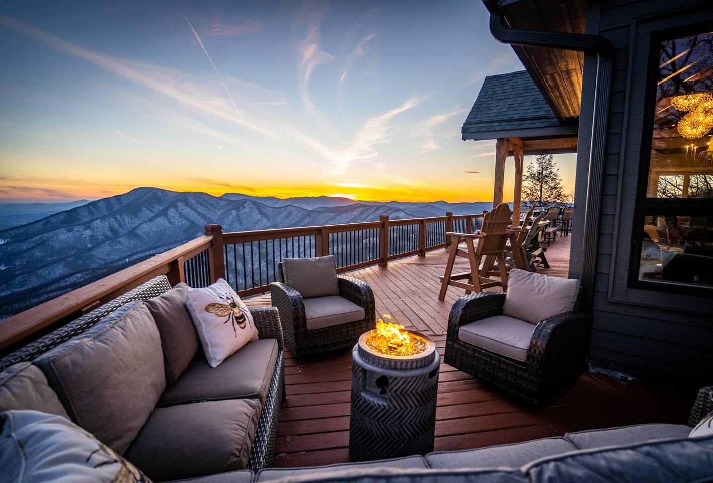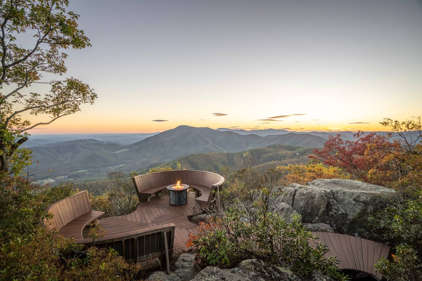 The chalet is less than 1 mile to the slopes and a few minutes’ drive to all the dining and entertainment at Wintergreen. Just two doors down is Blackrock park, which boasts a fantastic hiking trail that goes right by our backyard. If you’re willing to venture a bit further, some of the best hiking trails in the state are off the Blue Ridge Parkway (15 minutes from the cabin), two sandy-beach-entrance lakes plus a community pool for swimming, and over dozen wineries, breweries, and distilleries within a 30 minute drive. The home layout is as follows: Upper level: (Note: main entrance enters this level with zero steps from the flat upper driveway) - Grand entrance foyer - Primary living room with working propane fireplace and big screen TV - Dining area for 10, plus an addition table that seats 4, plus room for 4 more at the kitchen bar - Additional couch seating area to enjoy conversation and views. - Large, fully stocked kitchen with granite counters and island, stainless appliances, and gas range. Drip coffee and Keurig machines provided. - BR 1: Primary bedroom with king bed and upper deck access. Ensuite bathroom features jetted tub and steam shower - Half bath - Upper deck features multiple sitting areas, dining tables for 8 and 4, and a propane grill and fire table (propane provided for each) Middle level: (Note: lower driveway can access this level with zero steps) - Additional living room with big screen TV and wetbar with wine cooler, additional minifridge, and microwave - BR 2: King bed with ensuite bathroom - BR 3: King bed with ensuite bathroom - BR 4: 2 queen beds with ensuite bathroom - BR 5: King bed with dedicated work space. *Note: this bedroom does not have a bathroom, so bathroom options include using one of the other ensuite bathrooms on this level, or going downstairs to spa area bathroom - Full size washer and dryer - Middle level deck features multiple sitting areas and a table with seating for 4 - Heated floors throughout this level Lower level: - Game room with pool table, foosball table, arcade machine (which replaced the basketball game shown in photos), and TV - BR6: 2 queen beds - Spa area with indoor sauna and steam shower, built directly into the mountain with exposed boulder - Heated floors throughout this area - Lower level deck has 7 person hot tub with privacy fencing and amazing views - Lighted walkway down to the Eagle’s Nest sitting area with two custom-built curved benches and propane fire table