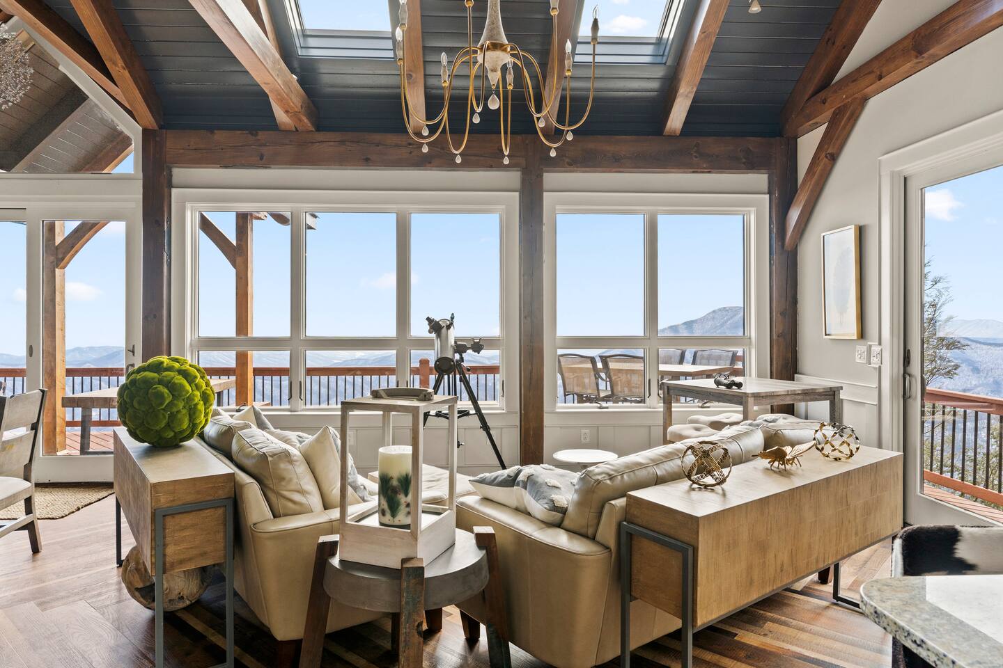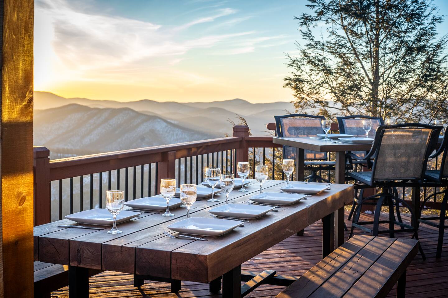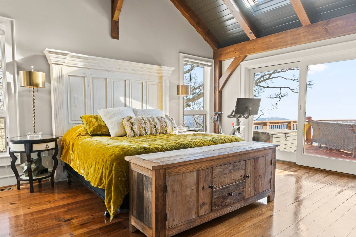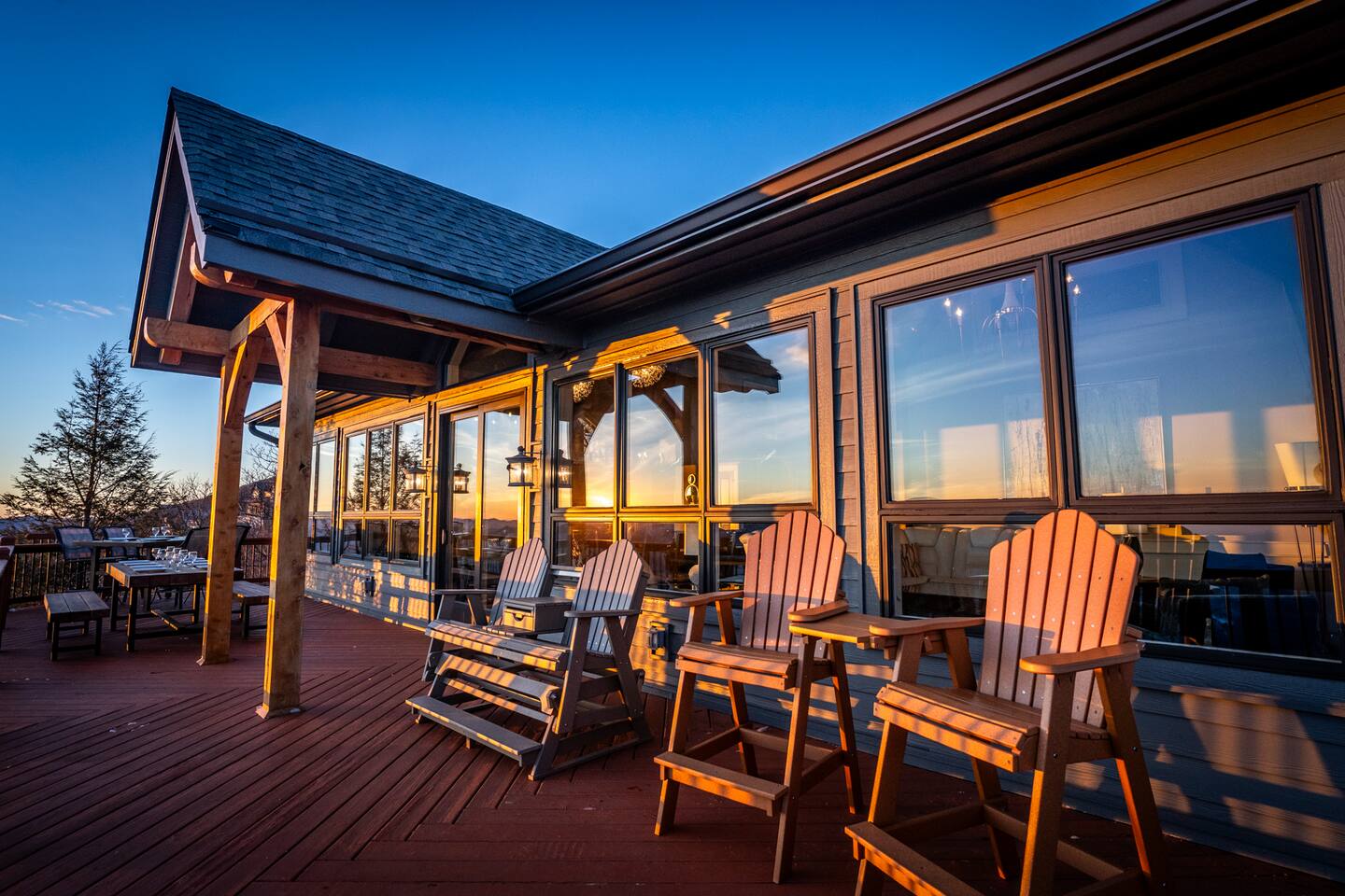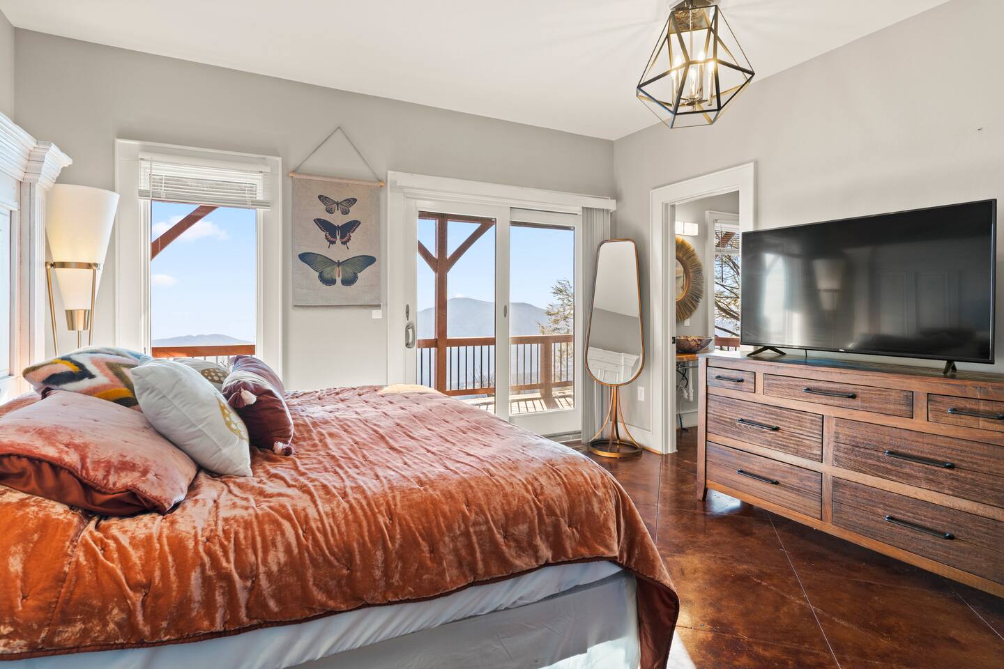 The chalet is less than 1 mile to the slopes and a few minutes’ drive to all the dining and entertainment at Wintergreen. Just two doors down is Blackrock park, which boasts a fantastic hiking trail that goes right by our backyard. If you’re willing to venture a bit further, some of the best hiking trails in the state are off the Blue Ridge Parkway (15 minutes from the cabin), two sandy-beach-entrance lakes plus a community pool for swimming, and over dozen wineries, breweries, and distilleries within a 30 minute drive. The home layout is as follows: Upper level: (Note: main entrance enters this level with zero steps from the flat upper driveway) - Grand entrance foyer - Primary living room with working propane fireplace and big screen TV - Dining area for 10, plus an addition table that seats 4, plus room for 4 more at the kitchen bar - Additional couch seating area to enjoy conversation and views. - Large, fully stocked kitchen with granite counters and island, stainless appliances, and gas range. Drip coffee and Keurig machines provided. - BR 1: Primary bedroom with king bed and upper deck access. Ensuite bathroom features jetted tub and steam shower - Half bath - Upper deck features multiple sitting areas, dining tables for 8 and 4, and a propane grill and fire table (propane provided for each) Middle level: (Note: lower driveway can access this level with zero steps) - Additional living room with big screen TV and wetbar with wine cooler, additional minifridge, and microwave - BR 2: King bed with ensuite bathroom - BR 3: King bed with ensuite bathroom - BR 4: 2 queen beds with ensuite bathroom - BR 5: King bed with dedicated work space. *Note: this bedroom does not have a bathroom, so bathroom options include using one of the other ensuite bathrooms on this level, or going downstairs to spa area bathroom - Full size washer and dryer - Middle level deck features multiple sitting areas and a table with seating for 4 - Heated floors throughout this level Lower level: - Game room with pool table, foosball table, arcade machine (which replaced the basketball game shown in photos), and TV - BR6: 2 queen beds - Spa area with indoor sauna and steam shower, built directly into the mountain with exposed boulder - Heated floors throughout this area - Lower level deck has 7 person hot tub with privacy fencing and amazing views - Lighted walkway down to the Eagle’s Nest sitting area with two custom-built curved benches and propane fire table