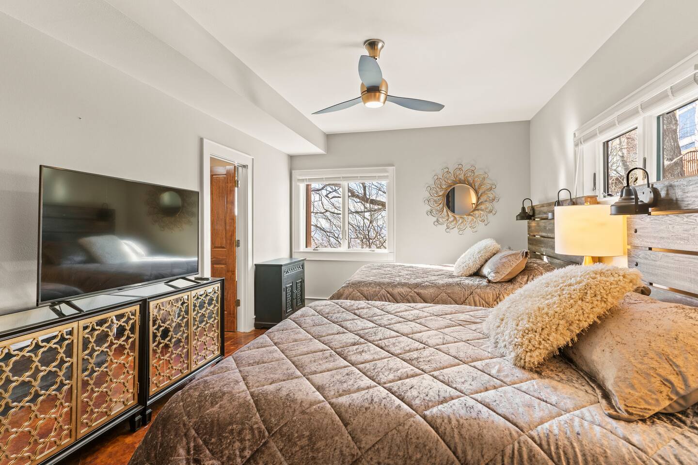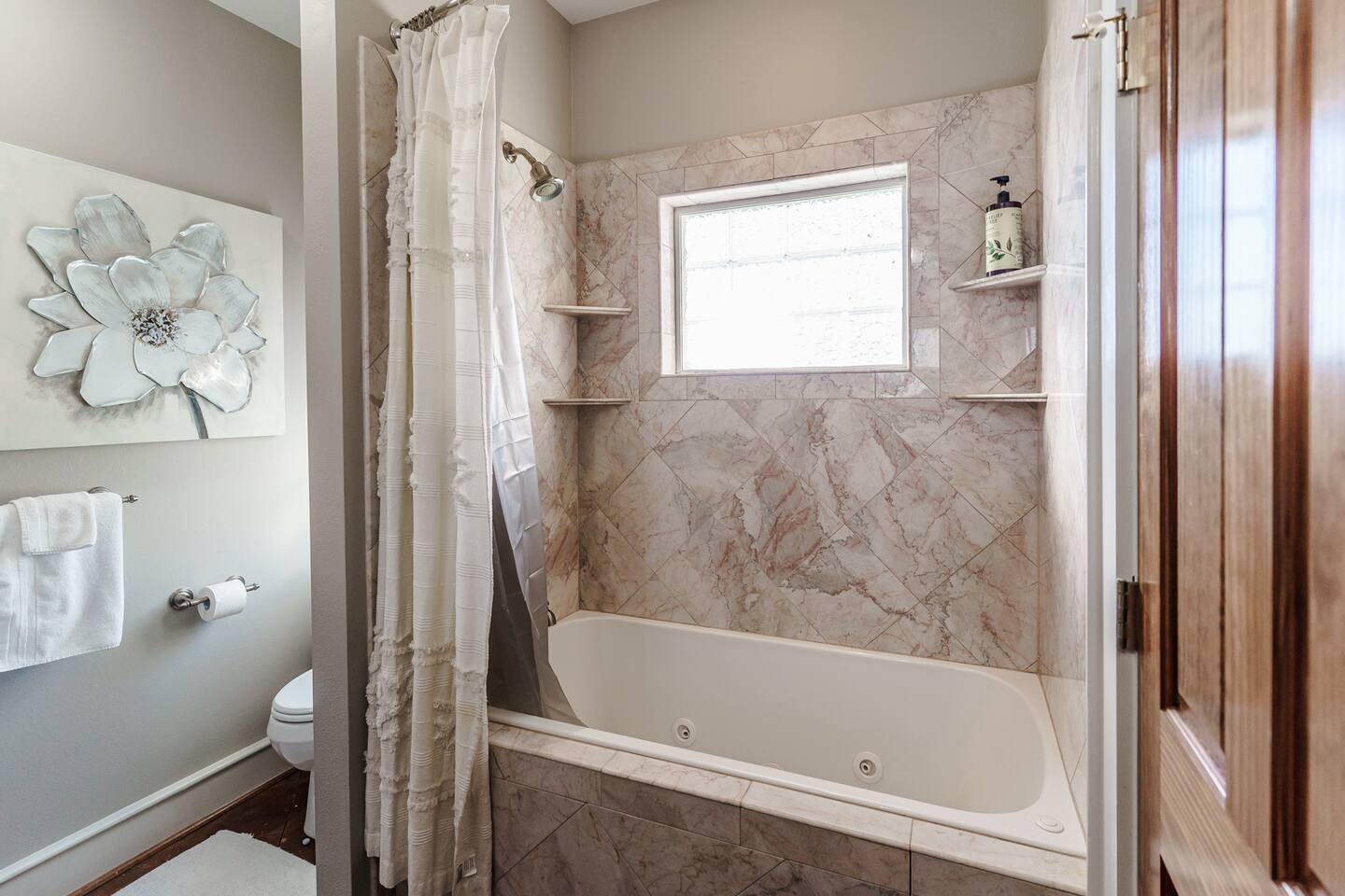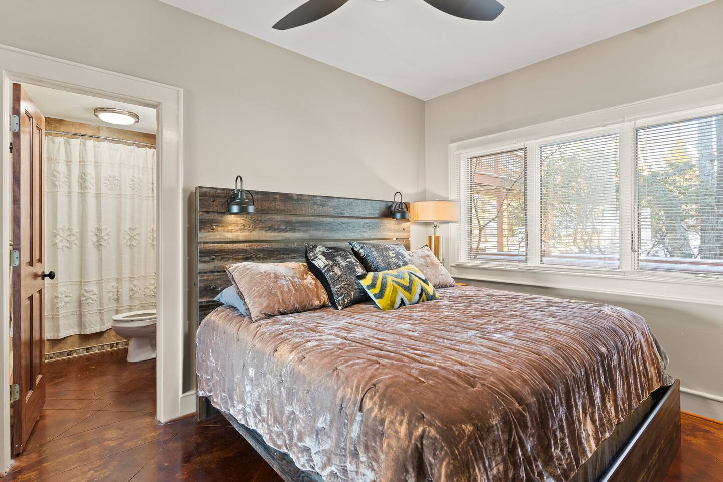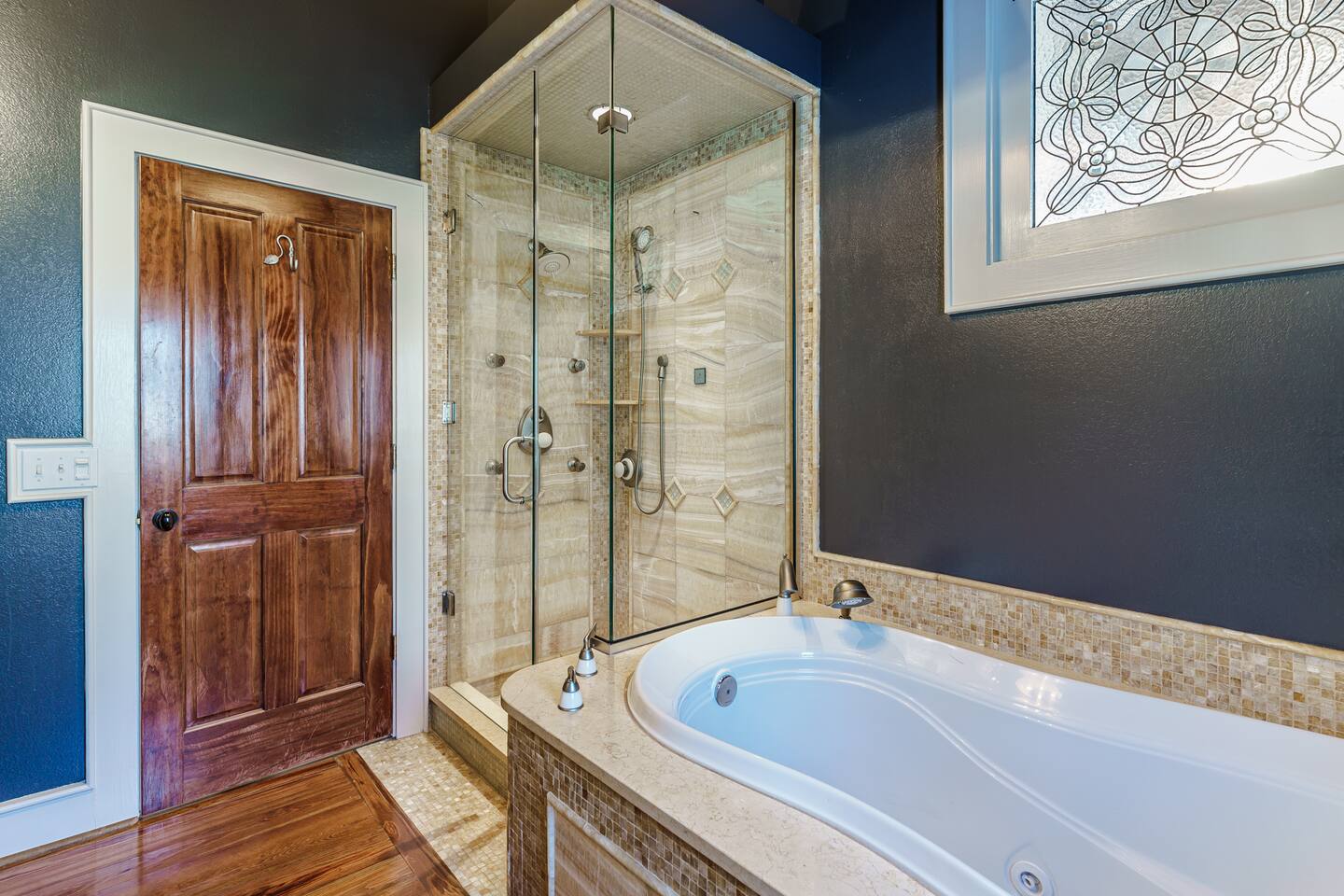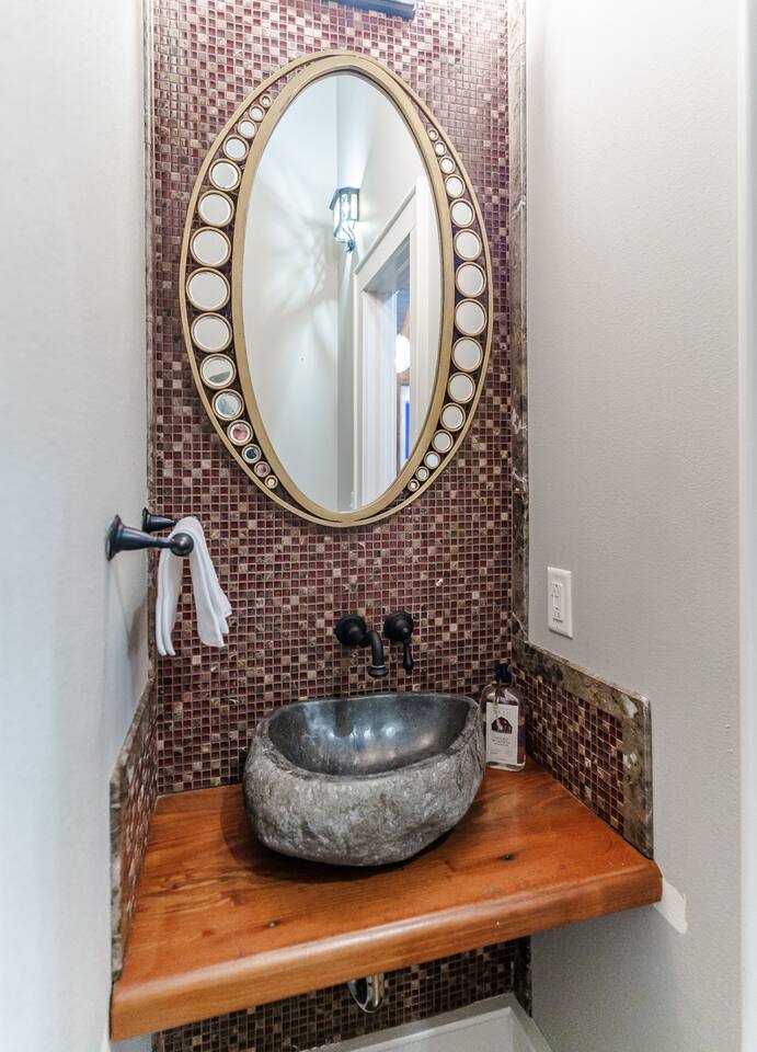 The chalet is less than 1 mile to the slopes and a few minutes’ drive to all the dining and entertainment at Wintergreen. Just two doors down is Blackrock park, which boasts a fantastic hiking trail that goes right by our backyard. If you’re willing to venture a bit further, some of the best hiking trails in the state are off the Blue Ridge Parkway (15 minutes from the cabin), two sandy-beach-entrance lakes plus a community pool for swimming, and over dozen wineries, breweries, and distilleries within a 30 minute drive. The home layout is as follows: Upper level: (Note: main entrance enters this level with zero steps from the flat upper driveway) - Grand entrance foyer - Primary living room with working propane fireplace and big screen TV - Dining area for 10, plus an addition table that seats 4, plus room for 4 more at the kitchen bar - Additional couch seating area to enjoy conversation and views. - Large, fully stocked kitchen with granite counters and island, stainless appliances, and gas range. Drip coffee and Keurig machines provided. - BR 1: Primary bedroom with king bed and upper deck access. Ensuite bathroom features jetted tub and steam shower - Half bath - Upper deck features multiple sitting areas, dining tables for 8 and 4, and a propane grill and fire table (propane provided for each) Middle level: (Note: lower driveway can access this level with zero steps) - Additional living room with big screen TV and wetbar with wine cooler, additional minifridge, and microwave - BR 2: King bed with ensuite bathroom - BR 3: King bed with ensuite bathroom - BR 4: 2 queen beds with ensuite bathroom - BR 5: King bed with dedicated work space. *Note: this bedroom does not have a bathroom, so bathroom options include using one of the other ensuite bathrooms on this level, or going downstairs to spa area bathroom - Full size washer and dryer - Middle level deck features multiple sitting areas and a table with seating for 4 - Heated floors throughout this level Lower level: - Game room with pool table, foosball table, arcade machine (which replaced the basketball game shown in photos), and TV - BR6: 2 queen beds - Spa area with indoor sauna and steam shower, built directly into the mountain with exposed boulder - Heated floors throughout this area - Lower level deck has 7 person hot tub with privacy fencing and amazing views - Lighted walkway down to the Eagle’s Nest sitting area with two custom-built curved benches and propane fire table